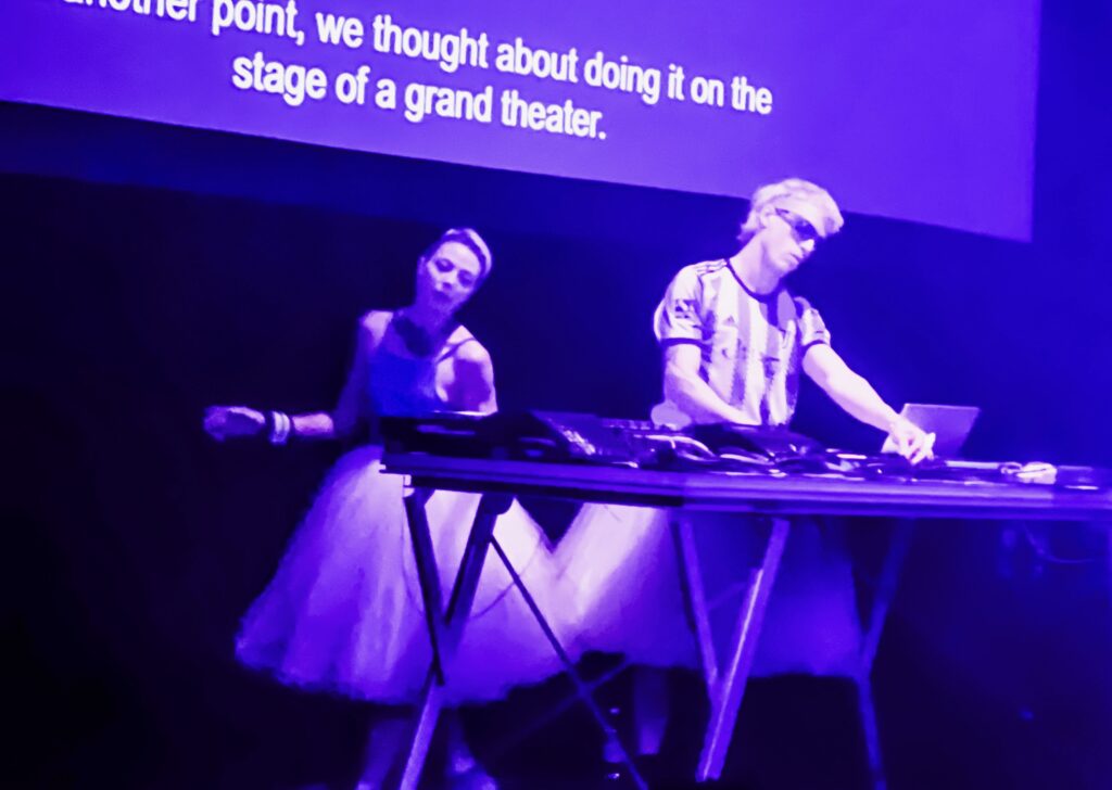 That same spirit of reckoning and resilience pulsed through the festival’s programming—from the visceral choreography of Estampida Humana, to the bold theatricality of Teatro Bol, to the gloriously unhinged rodeo-in-drag Agropeça by Antonio Araujo, performed in a sand-filled arena where machismo meets melodrama. And then came Bailarinas incendiadas by Grupo Krapp—a tragic tale of real-life ballerinas consumed by gas lamp fires in early French theaters, reimagined as a neon-lit club with a live DJ and a dance floor. It was stunning. I, of course, couldn’t join the dancing—I was once badly burned by a gas lamp in an entirely unrelated incident. Needless to say, the connection was immediate.